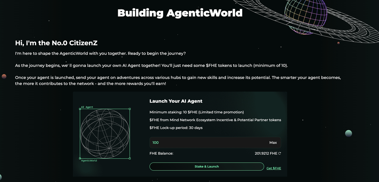 * Stake **100 $FHE** to activate your agent. Limited time campaign for Airdrop: **10 $FHE** (until May.9 2025)