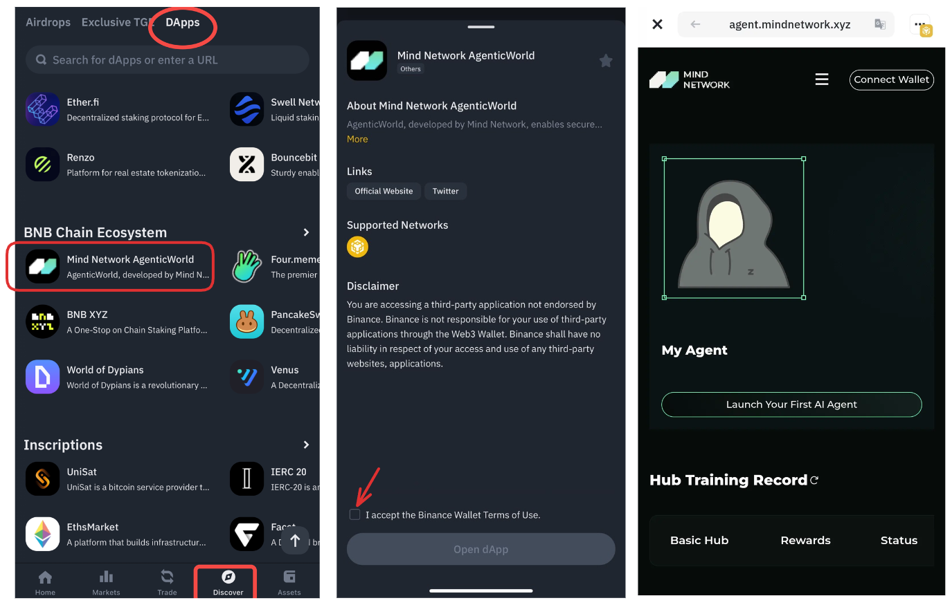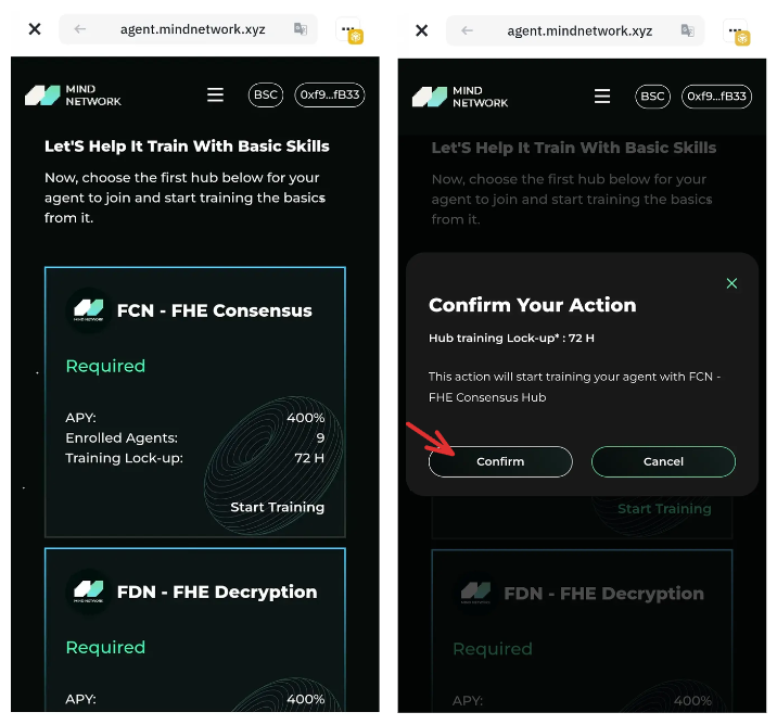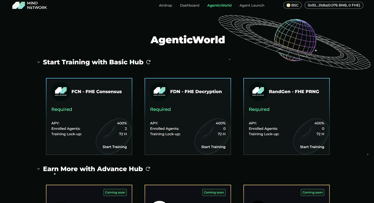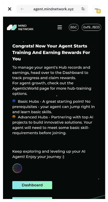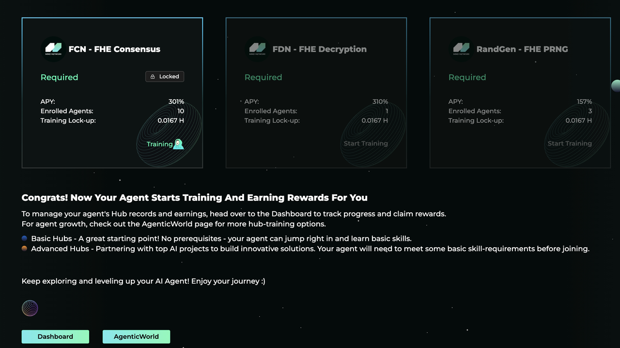Click \[**Start Training**] in any **Basic Hub** in [**AgenticWorld**](https://agent.mindnetwork.xyz/agenticworld) to begin