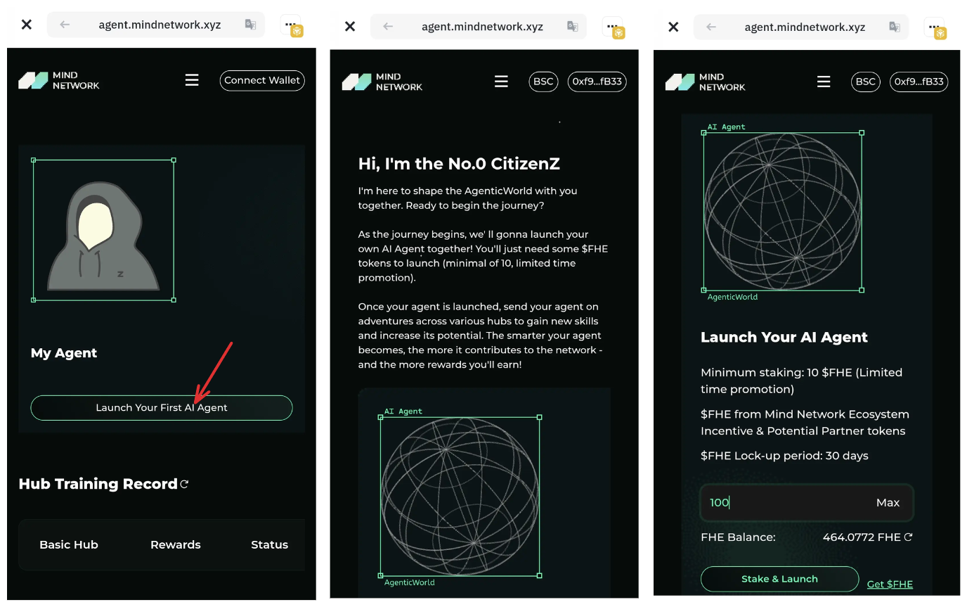 Agent Launch Dapp: [agent.mindnetwork.xyz/agentlaunch](https://agent.mindnetwork.xyz/agentlaunch)&#x20;