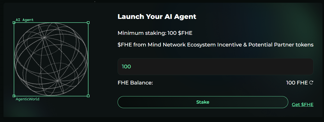 Stake the **100 $FHE** you received to activate your agent.