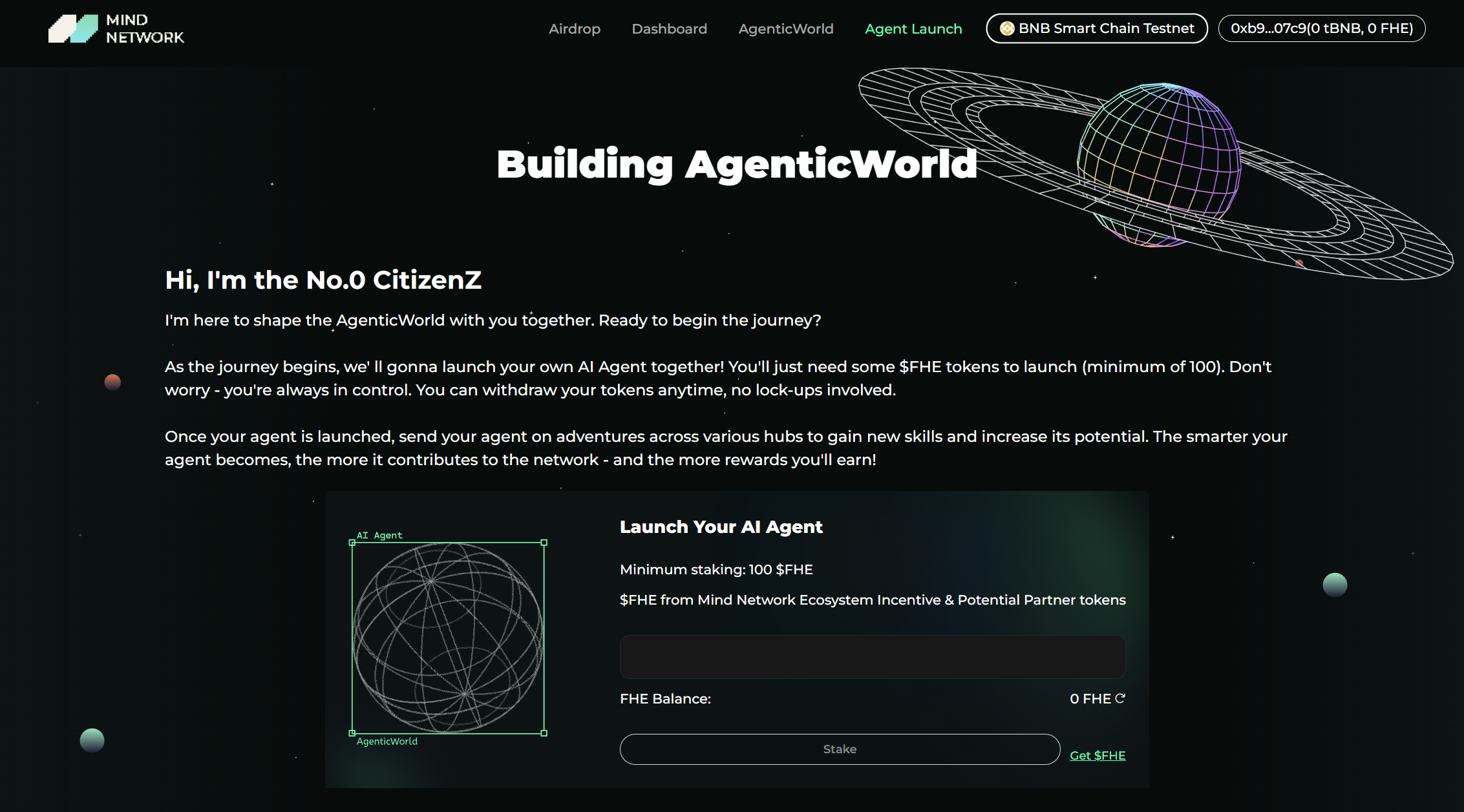 If you're a non-developer user, please head to our **mainnet** at [agent.mindnetwork.xyz/agentlaunch](https://agent.mindnetwork.xyz/agentlaunch) and follow the tutorial at [AgenticWorld User Guide](https://docs.mindnetwork.xyz/minddocs/product/agenticworld/agenticworld-user-guide).
