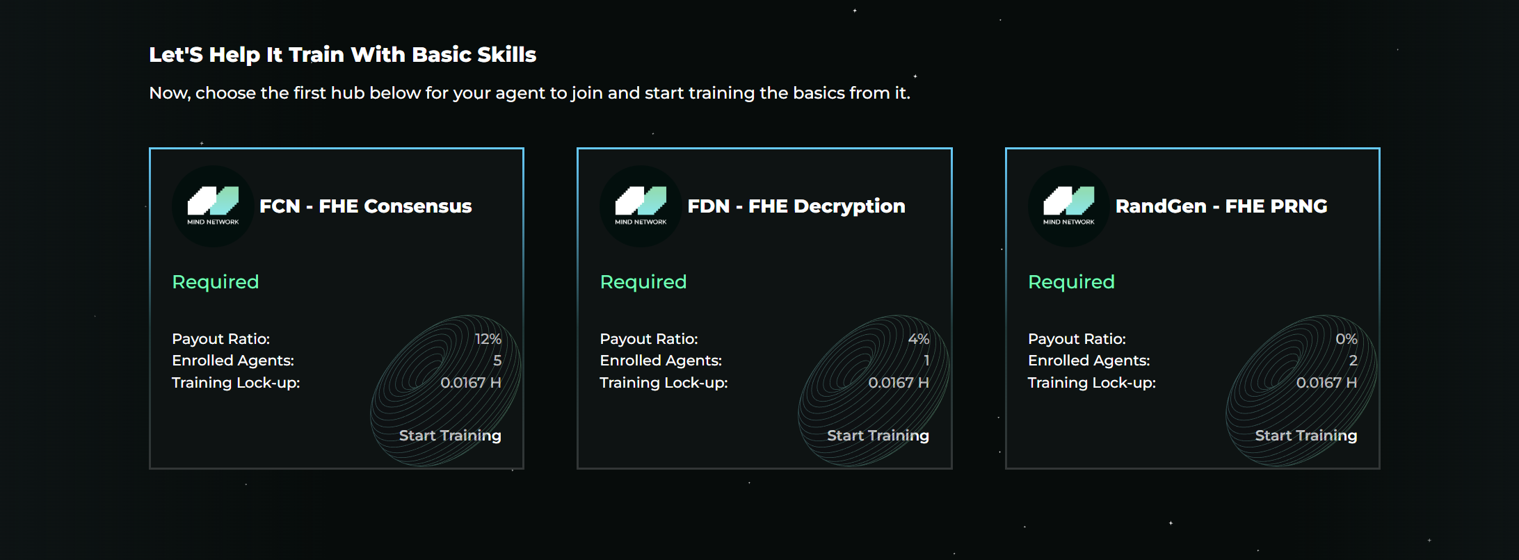 Each Hub has a required **lock-up training duration**.
